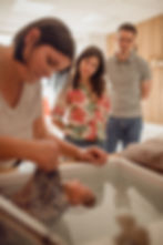 A la sortie du bain, un temps de peau à peau ou de tétée sera possible, pour que toute la famille prenne un temps ensemble.